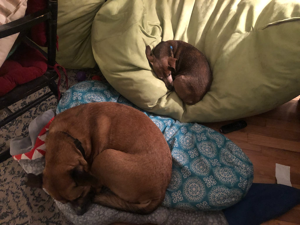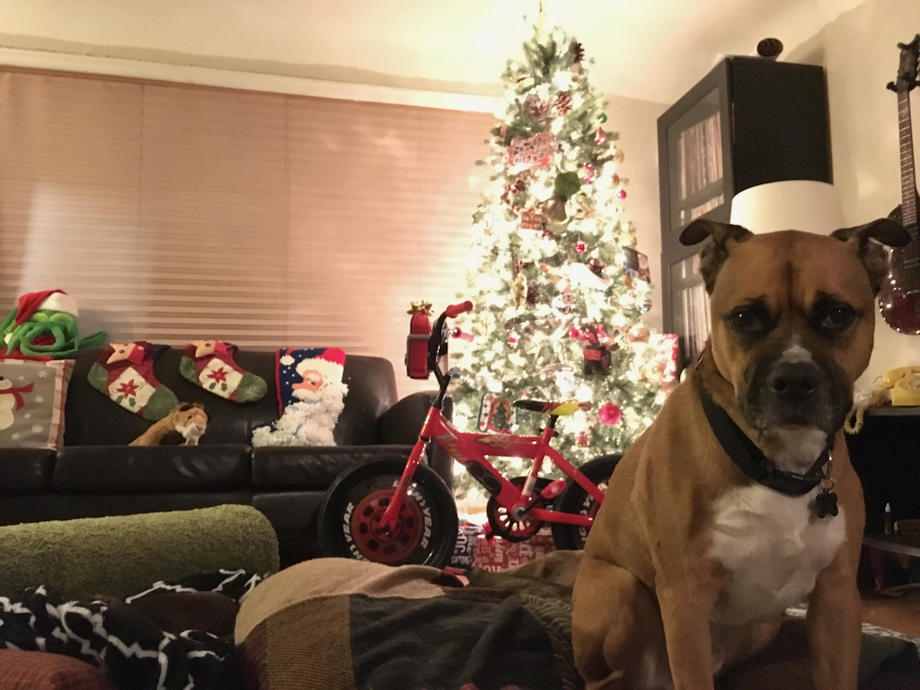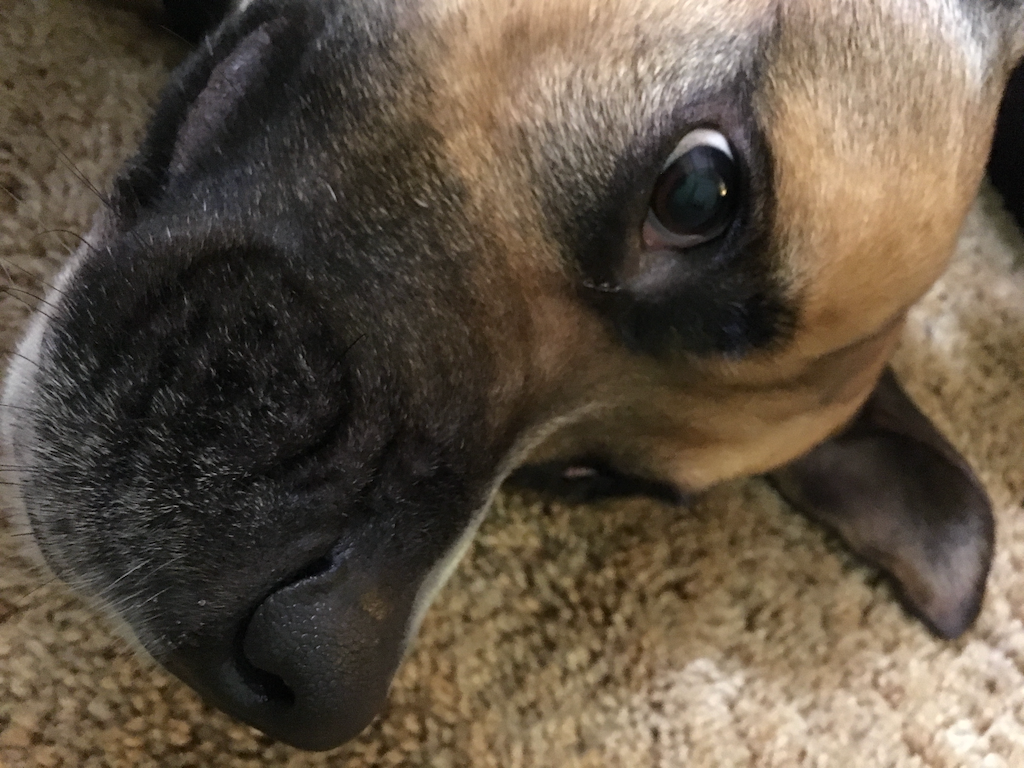 I sit here in my temporary housing, embracing the coziness of fall weather and its attendant sweaters and cocoas and whatnot, and face the prospect of being in a house without a dog to snuggle for the first time in around 20 years. Today we euthanized Cyrus, our absolute doof of a Boxer/Shepherd mix after a pretty darn long life and a much longer run with cancer than anyone expected.